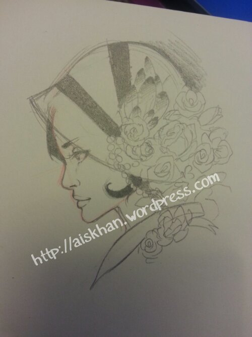 Quick sketch of a woman wearing a cloche hat. It needs more flowery things. But this will happen to decorated a cover of a journal or sketchbook at some point in time.