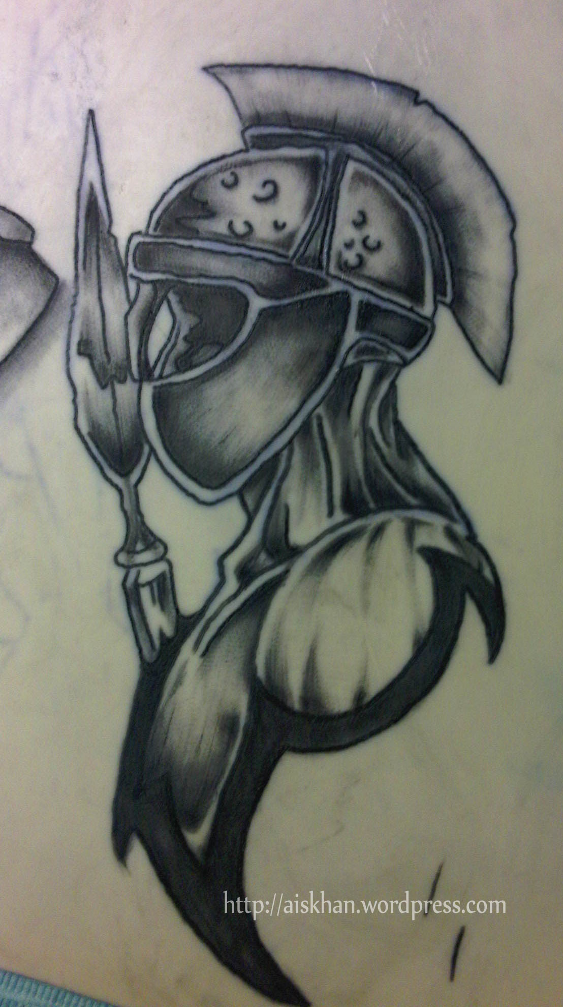 Strange knight, or Roman legion with spear. Done on fake skin.