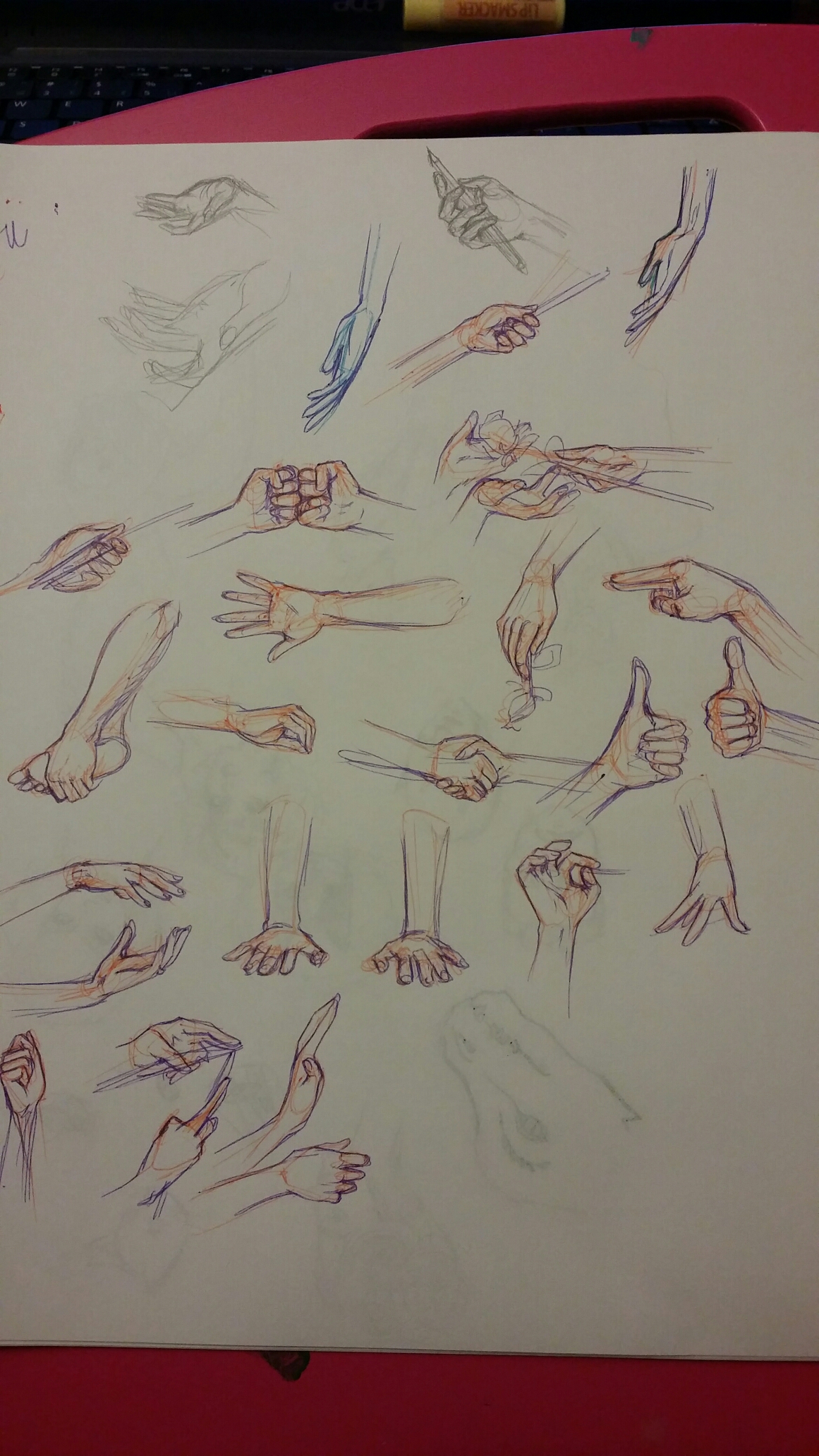 Some sketches of hands in different poses. Roughly spent about 2 minutes on each.