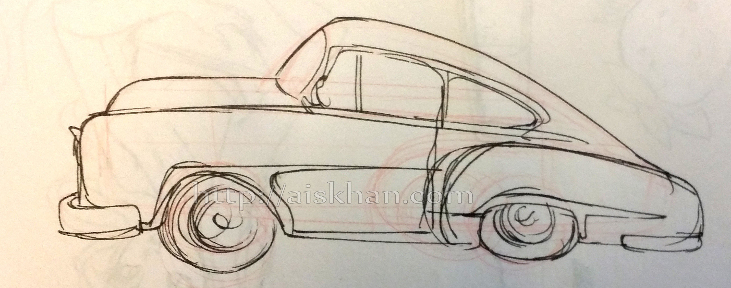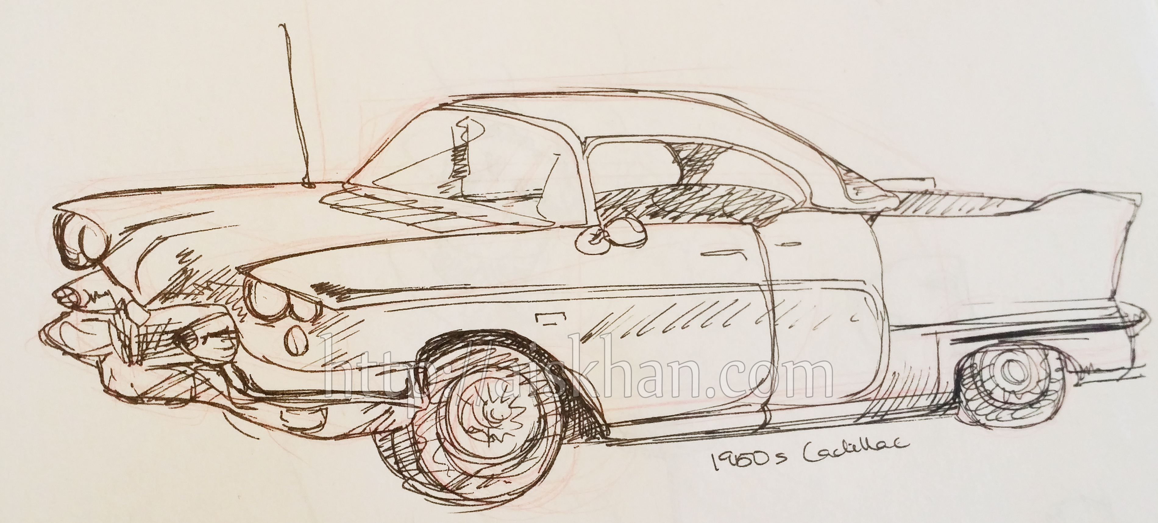 0.1 mm Carbon Pen, 0.5 mm red pencil.