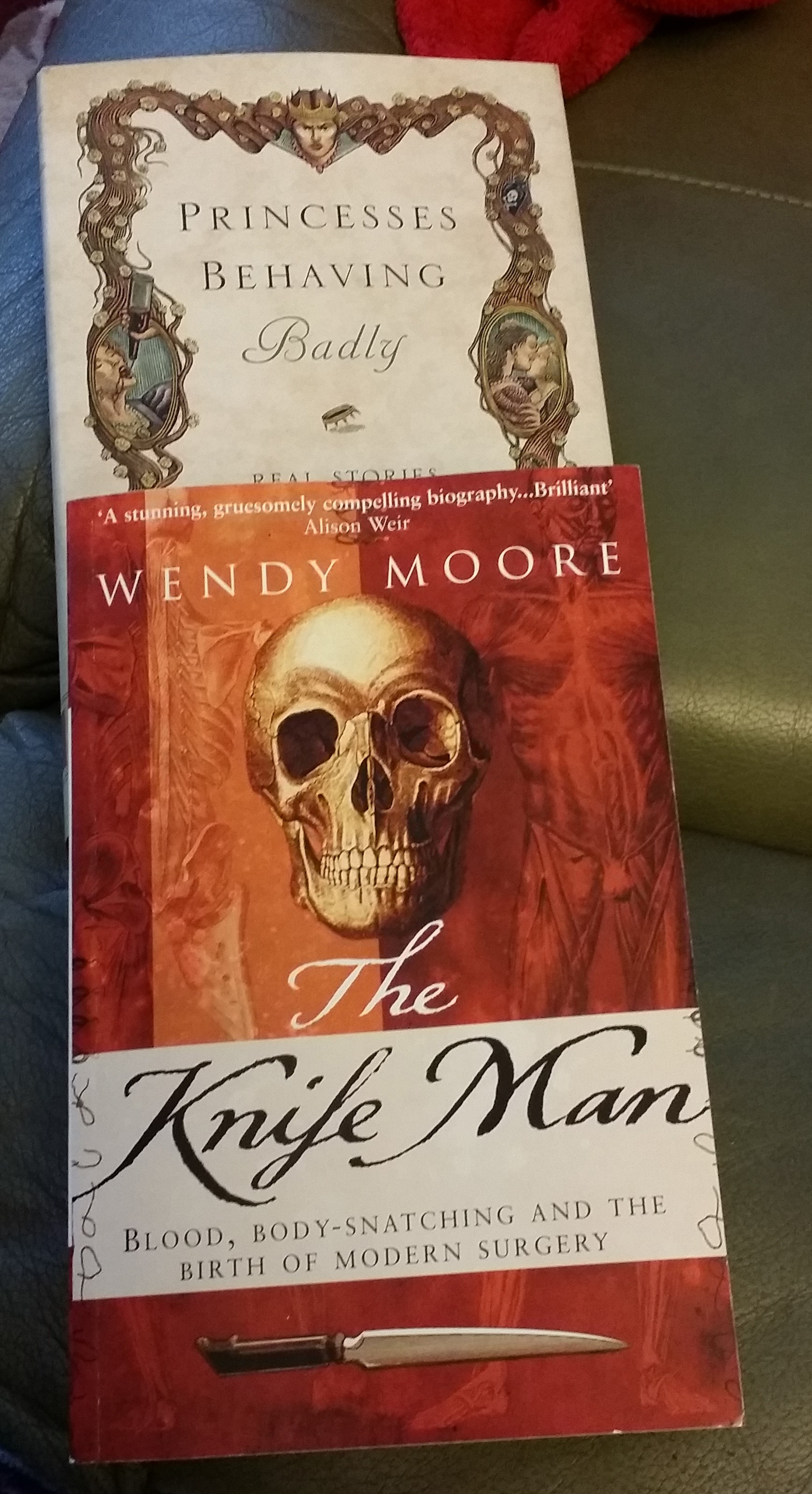 I don’t have any art for today, so instead some of the books I’m reading. “The Knife Man” by Wendy Moore, it’s a biography on the man who created modern surgery, and “Princesses Behaving Badly” by Linda Rodriguez McRobbie, the title of which I think is self-explanatory. These are both non-fiction by the way, it’s rare for me to pick up fiction anymore.