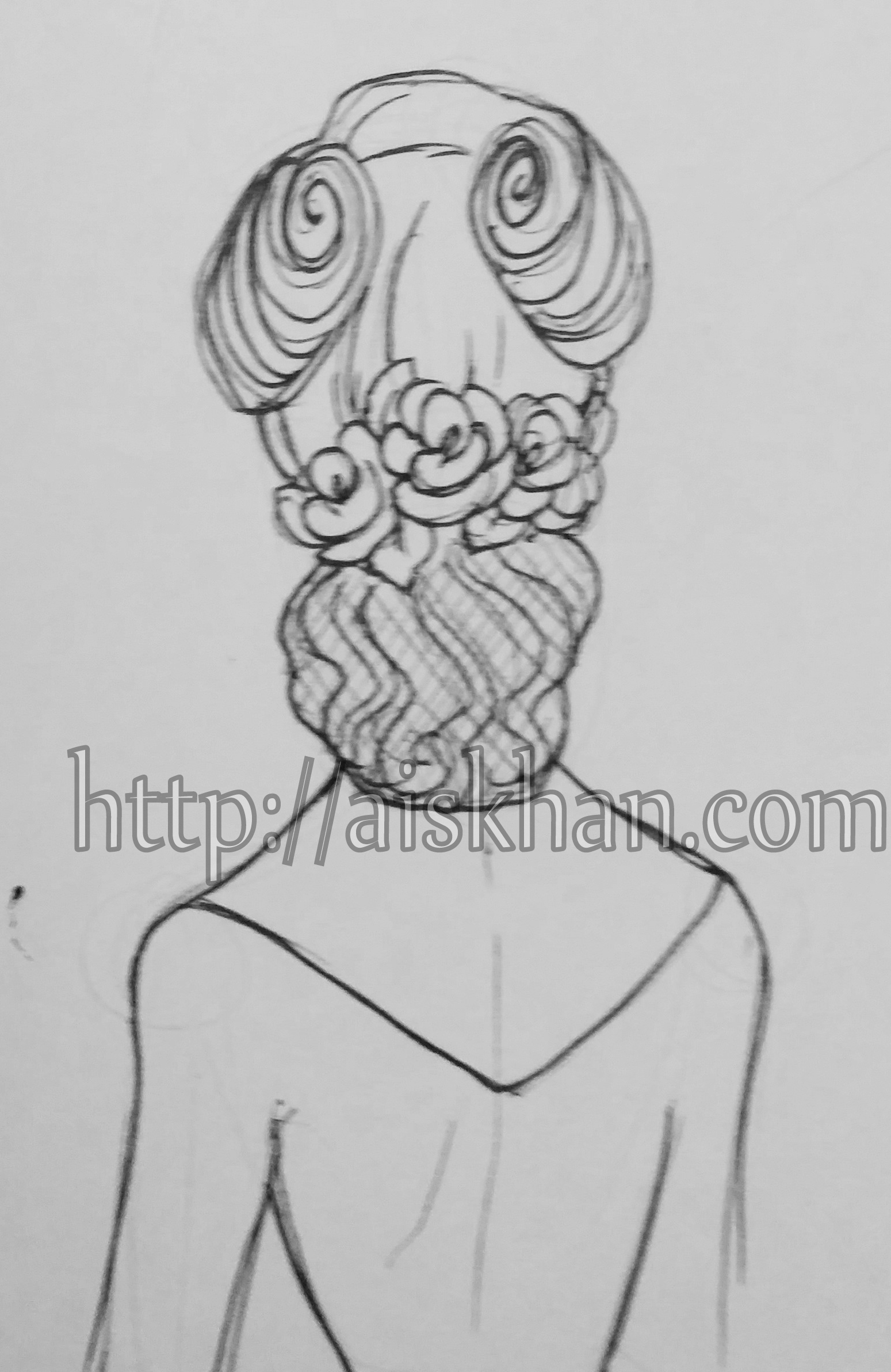 A quick little doodle, I was watching some of LisaFreemontStreet‘s tutorials on vintage hairstyles, and got inspired by the snood (snoods are a type of hair net, that were used for decorative purposes).