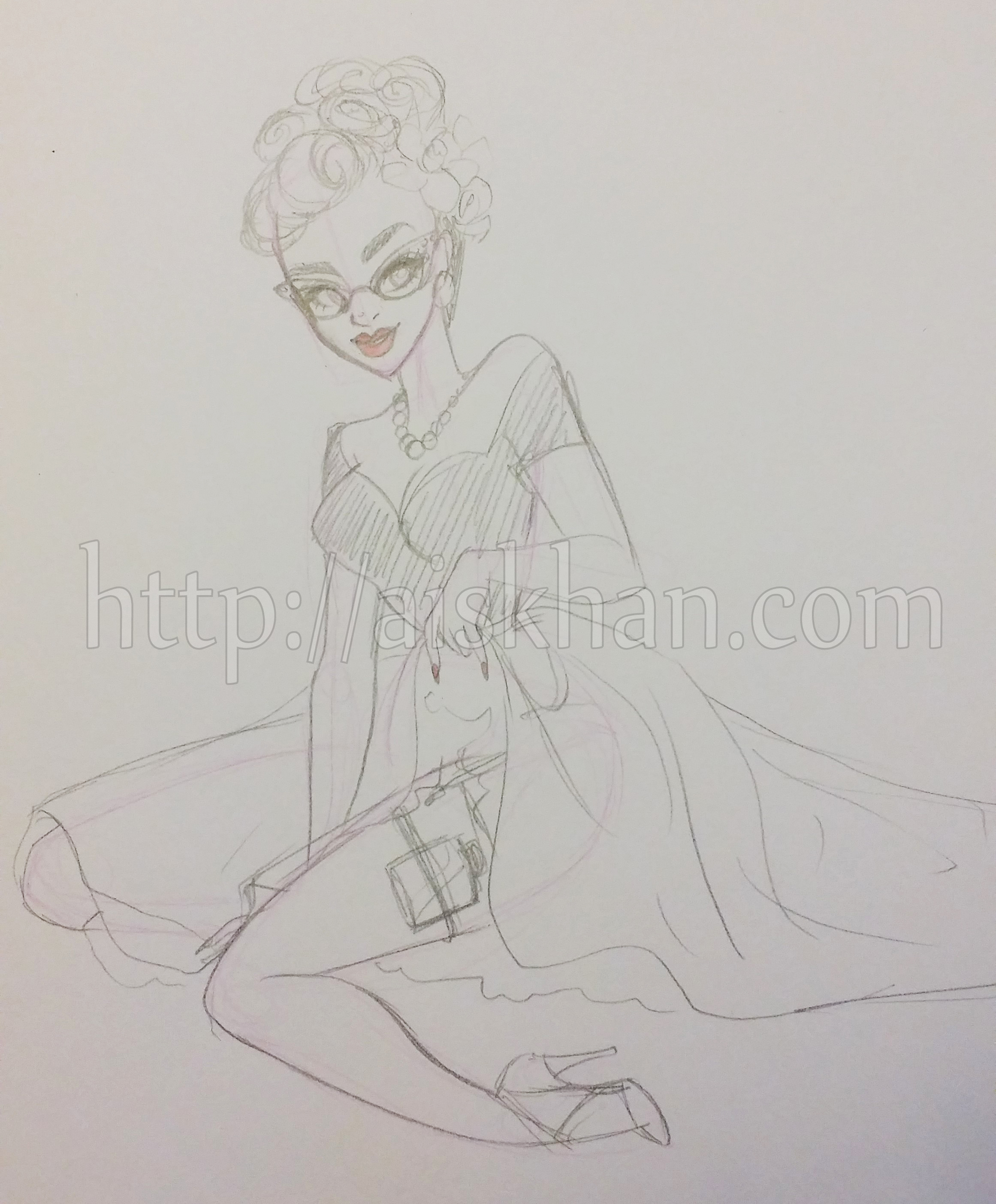 It’s rare that I draw any rough sketches in pencil. This is just a lovely pin up girl showing you where she hides her flask.