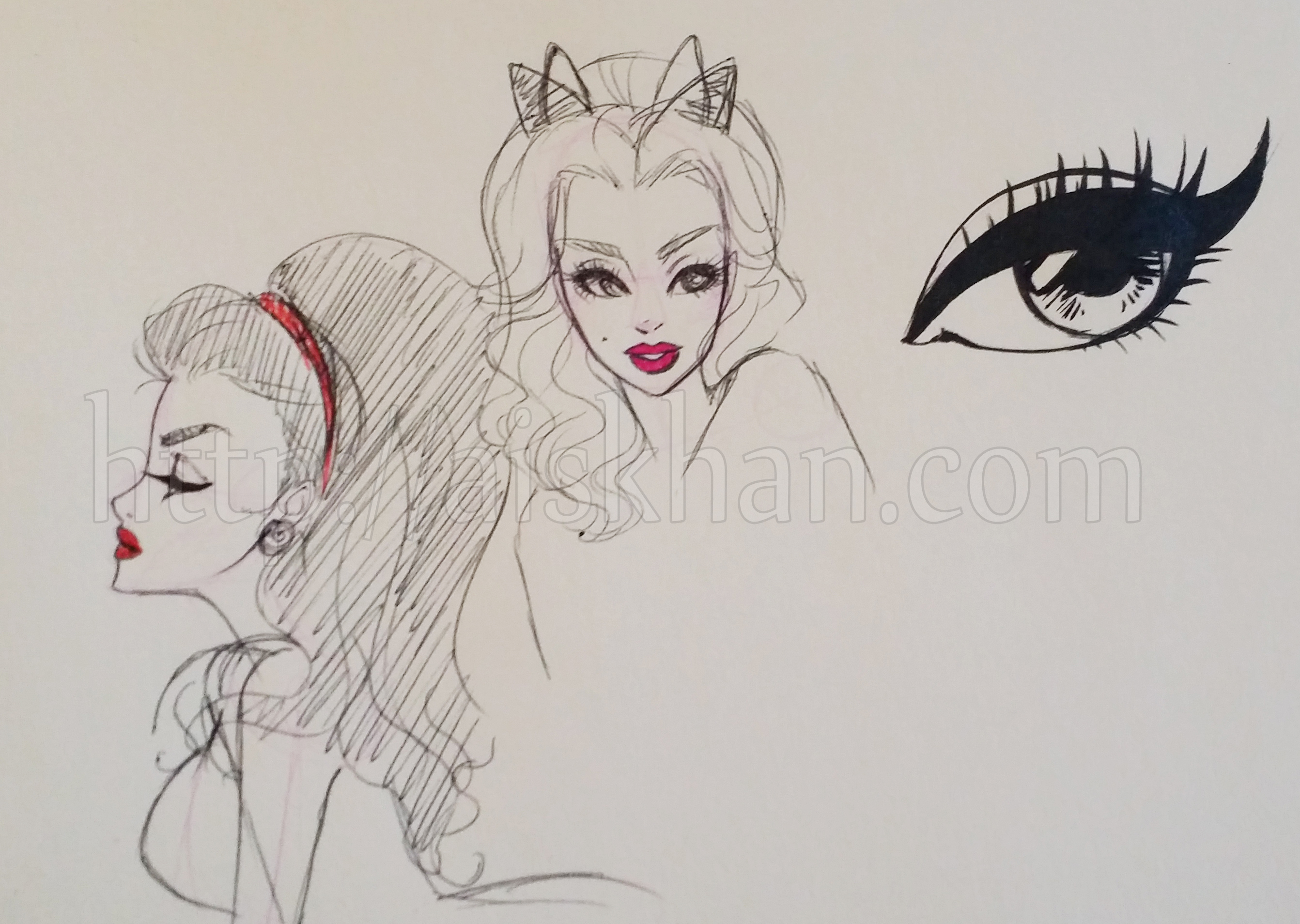 A couple of doodles from the other day. Nothing special, also it looks like she has four ears up there, but there’s only supposed to be the two coloured in.