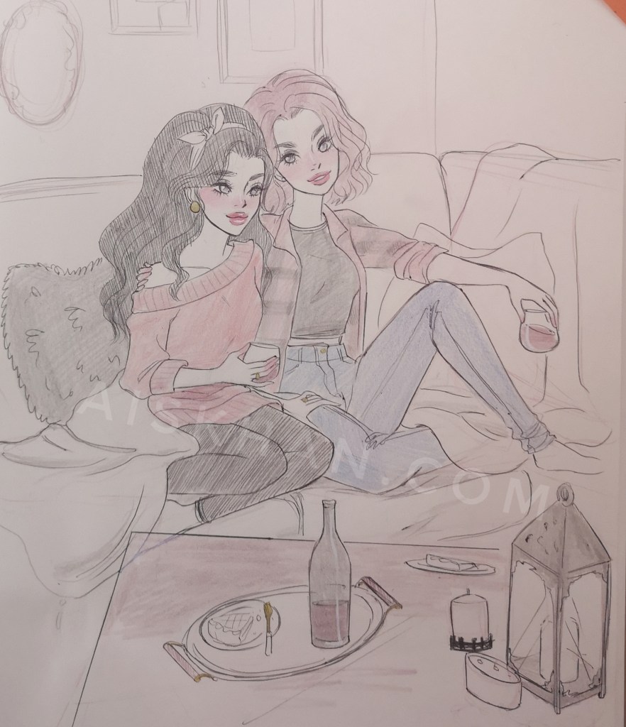Date night in. I’m really wishing I had made the brunette’s eyes closed, she’s looking a little too intense.