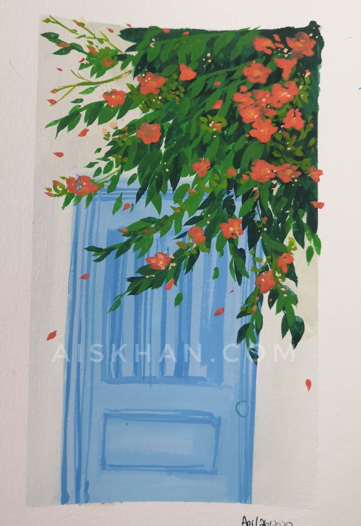 Another! And I’m sure you can tell by how poorly done the door is, I wasn’t into it. I really only wanted to paint the leaves and flowers.