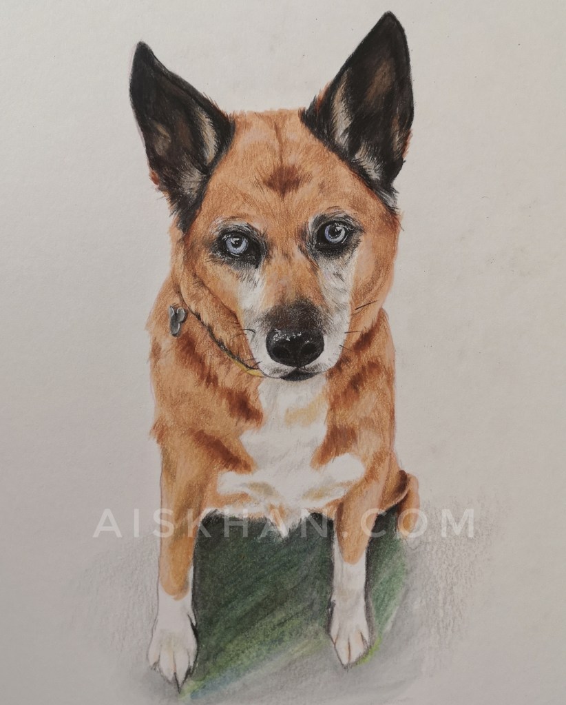 A commissioned portrait of a beloved pet, I hear he was a really good boy.